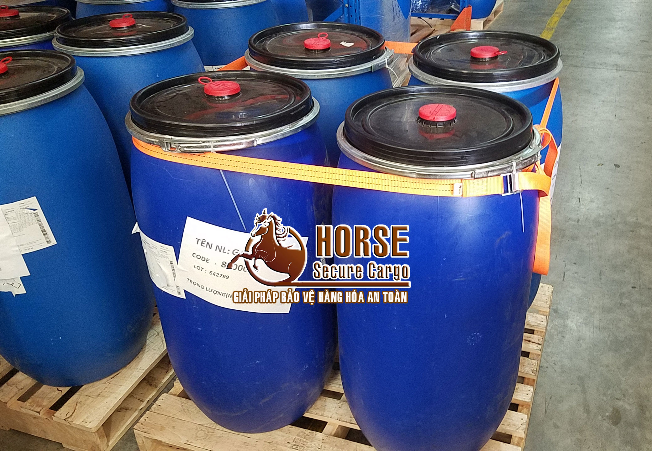 Cố định các thùng phi trên pallet lại với nhau