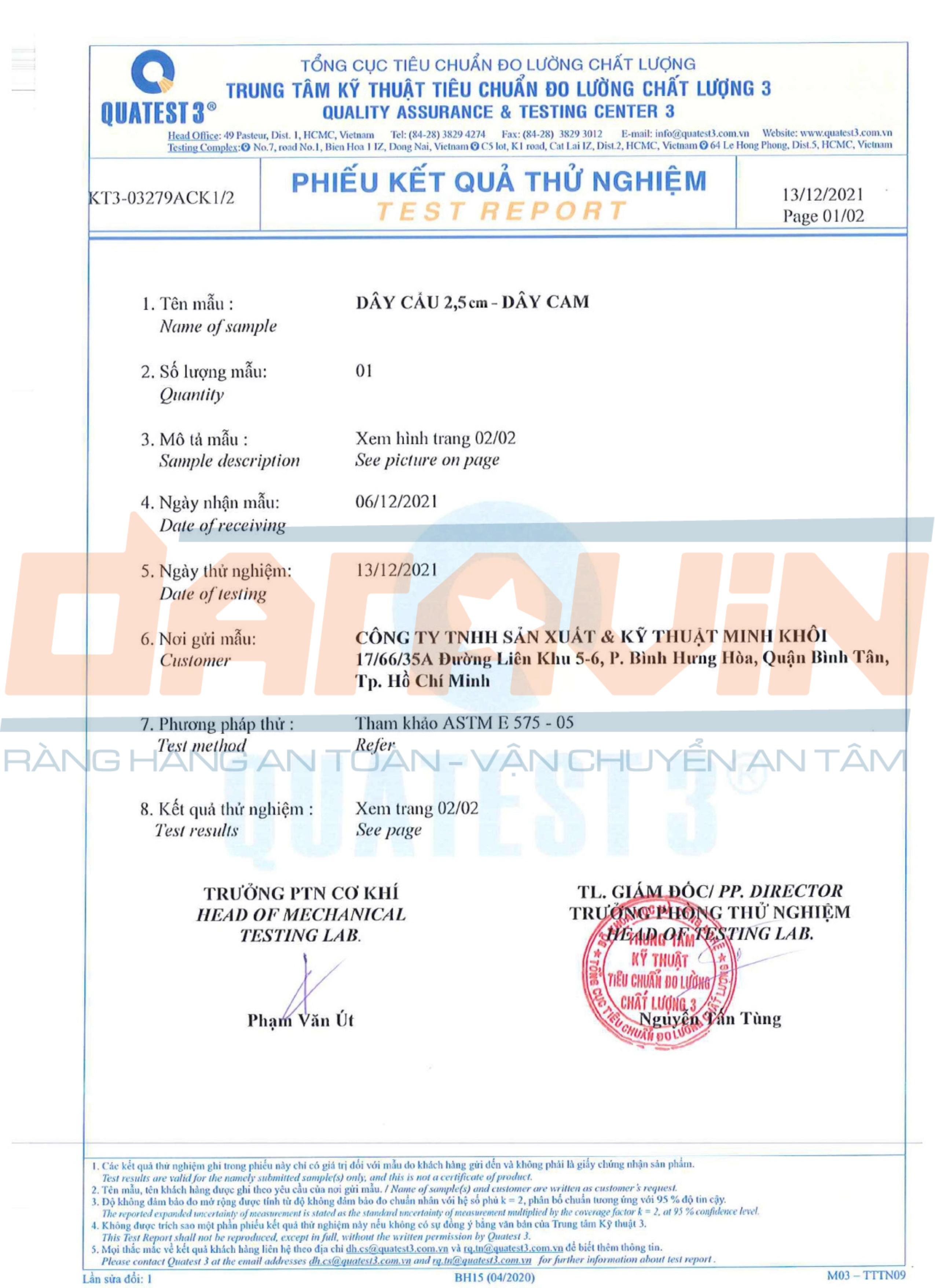 3. Các chứng chỉ kết quả kiểm định của sản phẩm.