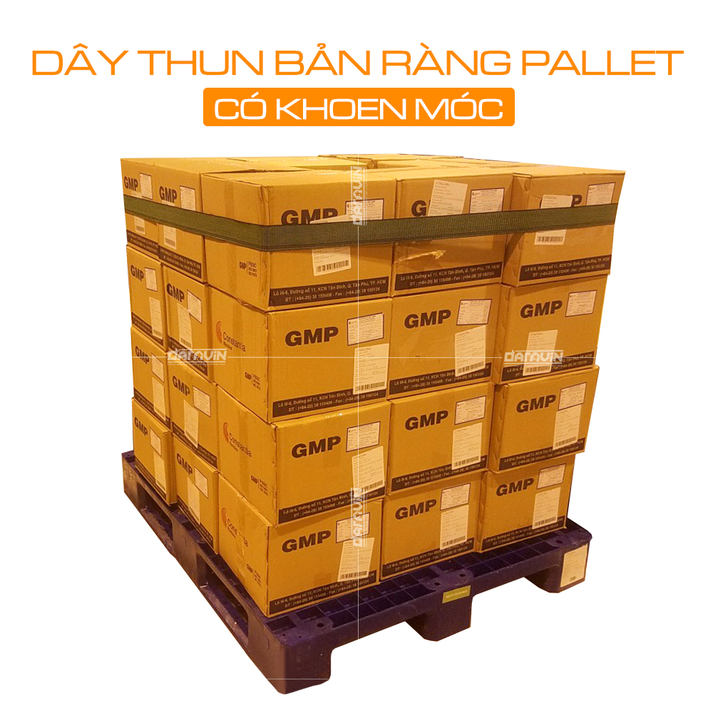 2. Hình thực tế mẫu dây thun bản ràng pallet có khoen móc