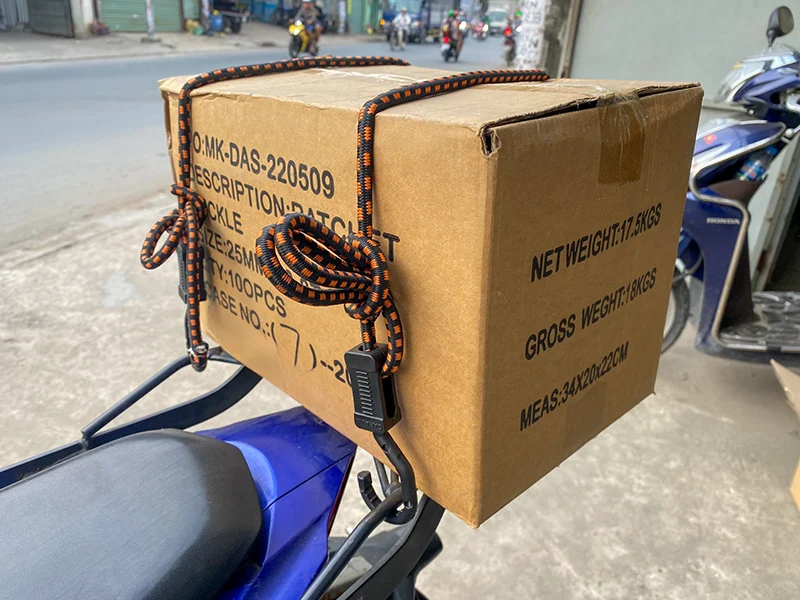 Dây thun cao su thường dùng buộc hàng hóa trên xe máy