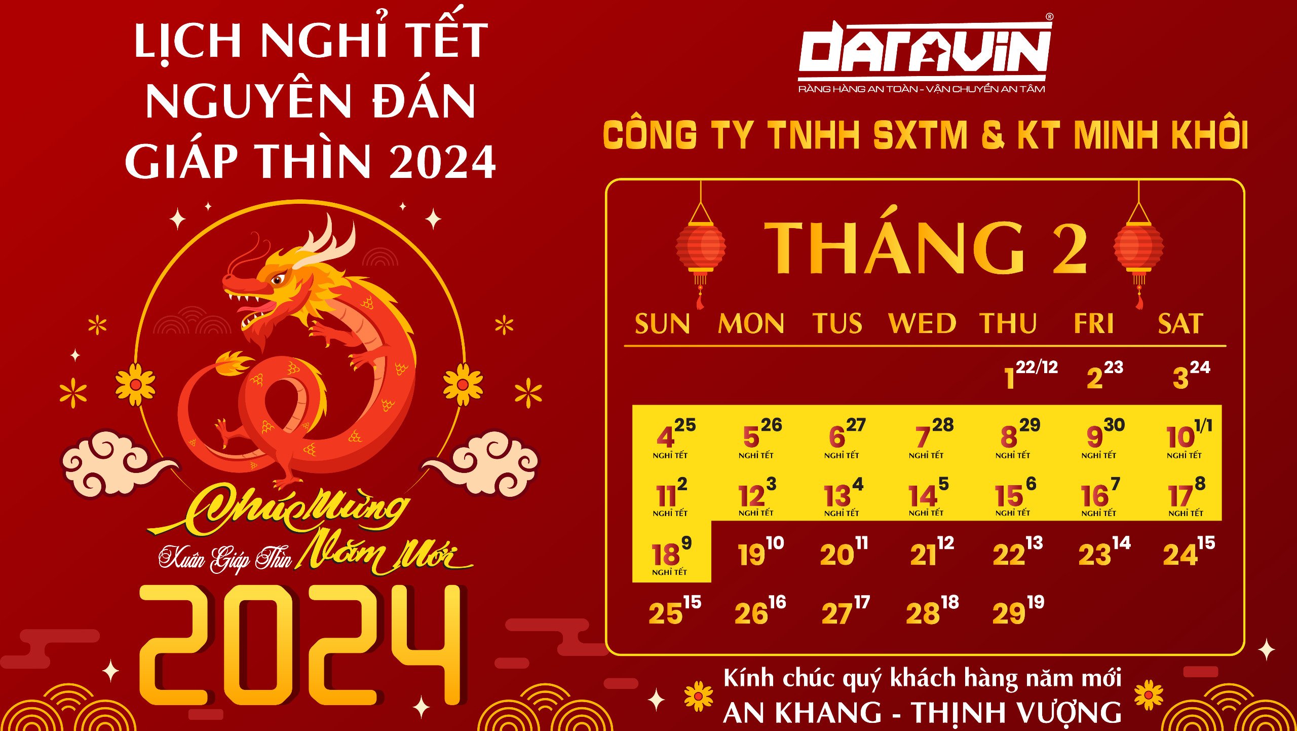 DARAVIN xin trân trọng thông báo tới Quý khách hàng và đối tác lịch nghỉ Tết Âm Lịch 2024 như sau: