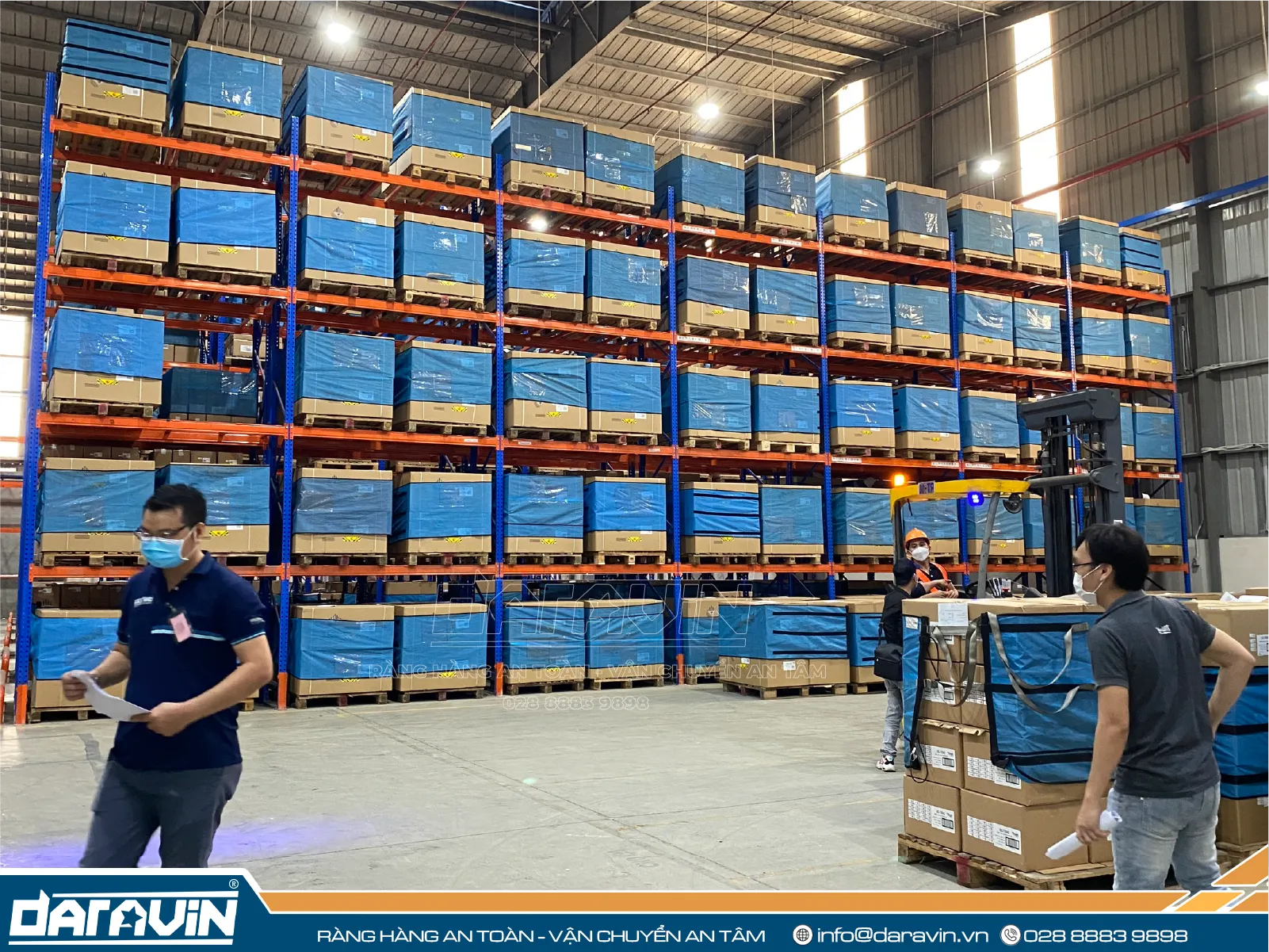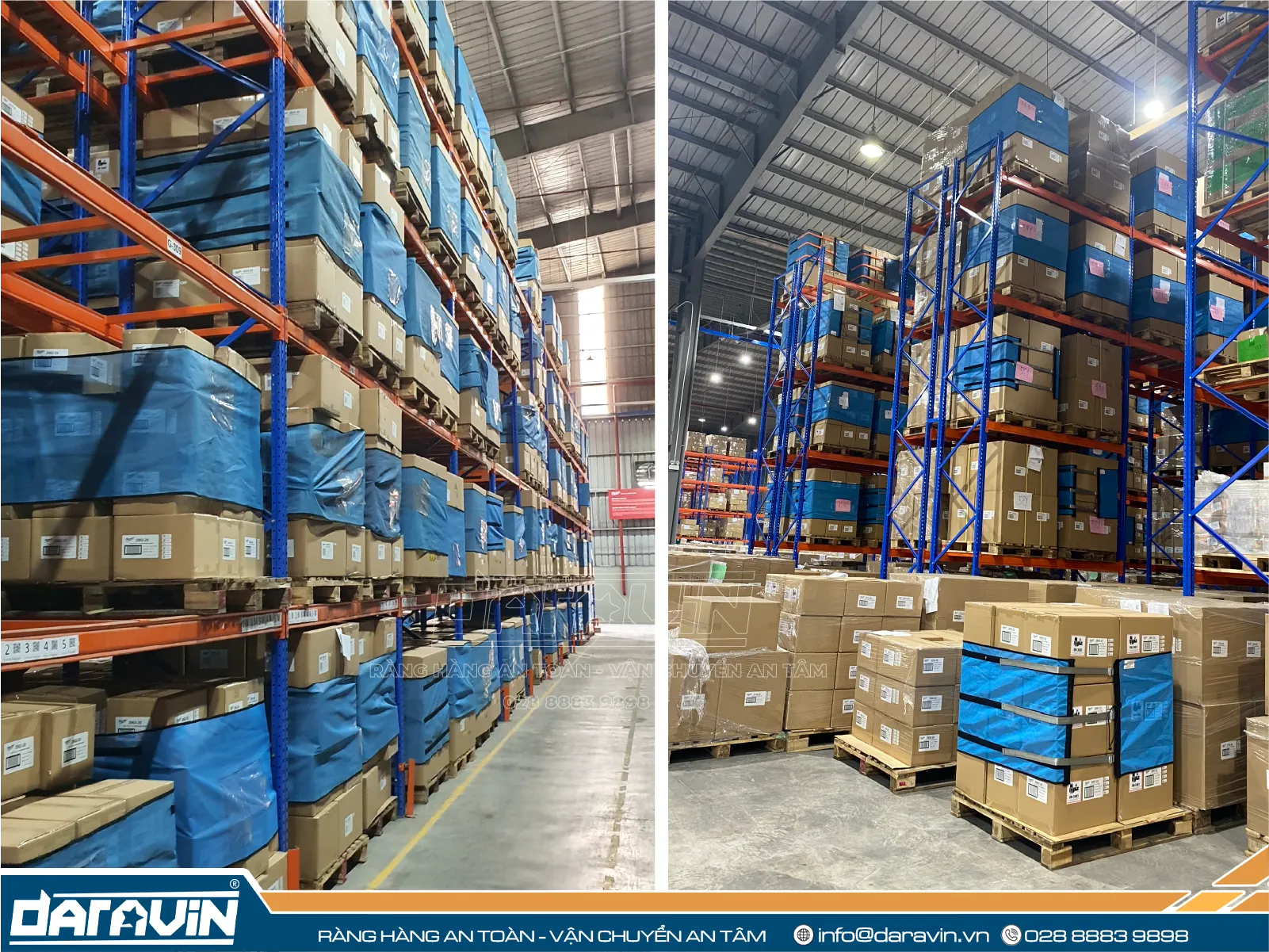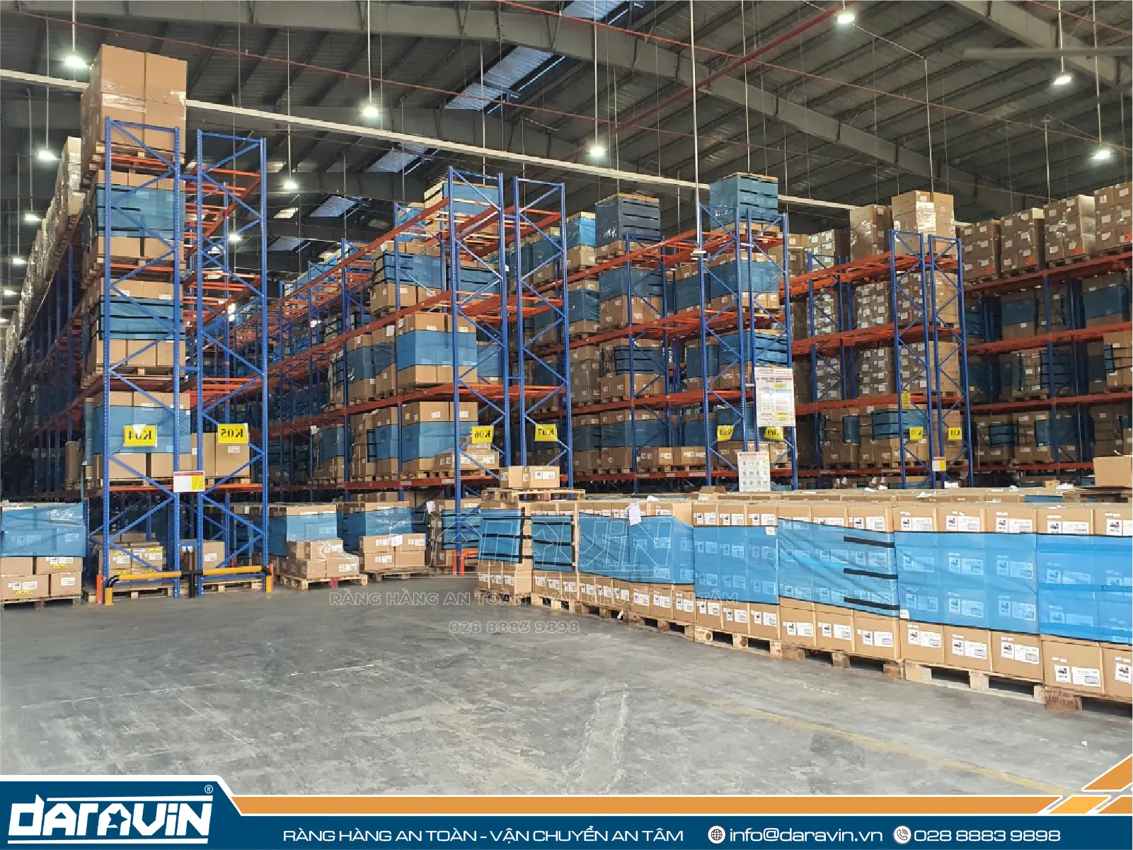 Kệ Selective: Là hệ thống phổ biến nhất, cung cấp khả năng tiếp cận 100% các pallet riêng lẻ. Dễ lắp đặt và sử dụng, nhưng kém hiệu quả về mặt không gian vì cần nhiều lối đi.