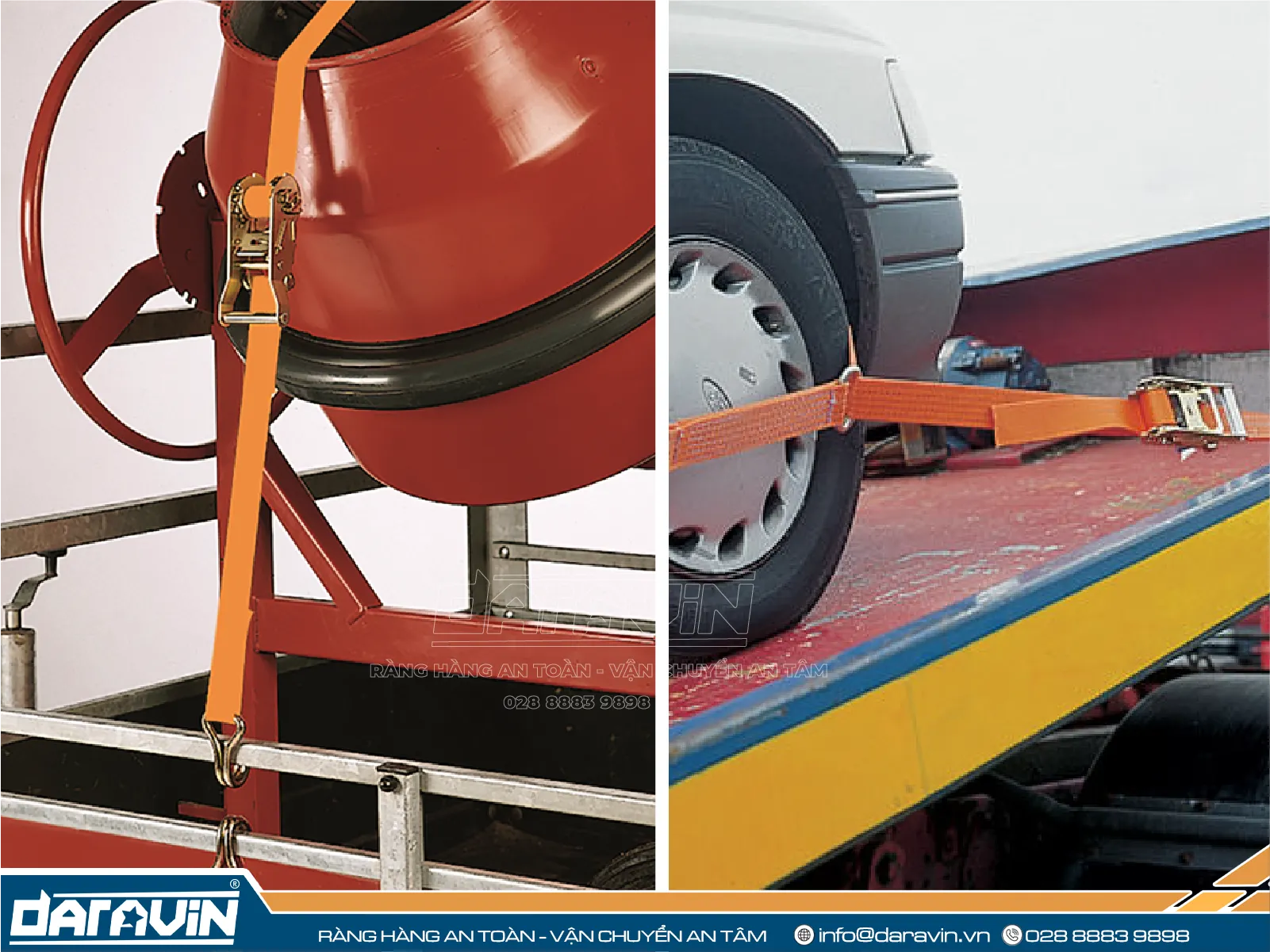 Khi vận chuyển hàng tải trọng nặng, người ta thường sử dụng dây tăng đơ để ràng chắc chắn
