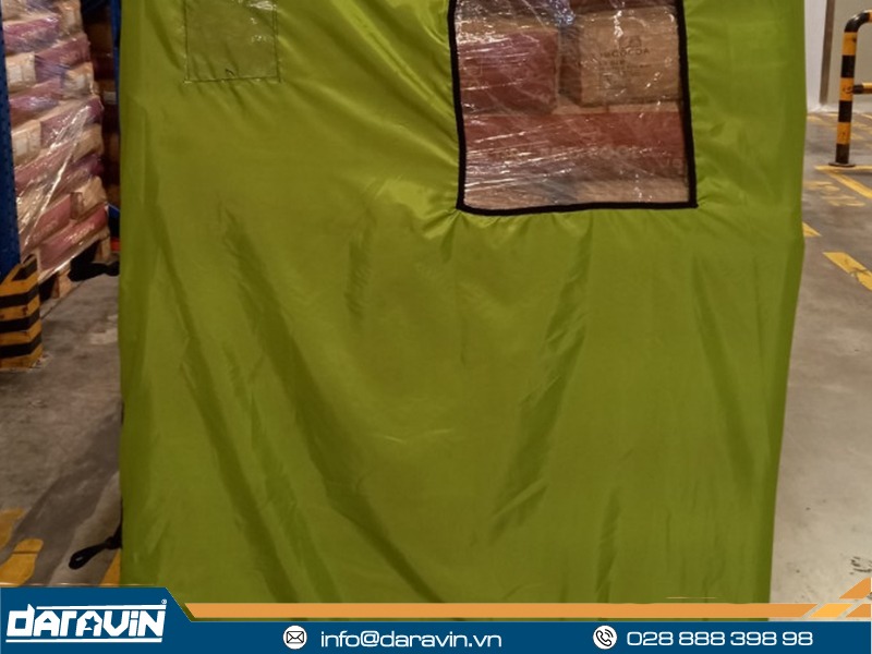 Chất liệu vải Canvas/Polyester tạo thành một lớp vỏ bọc vật lý dày dặn, che phủ kín hoàn toàn pallet hàng.