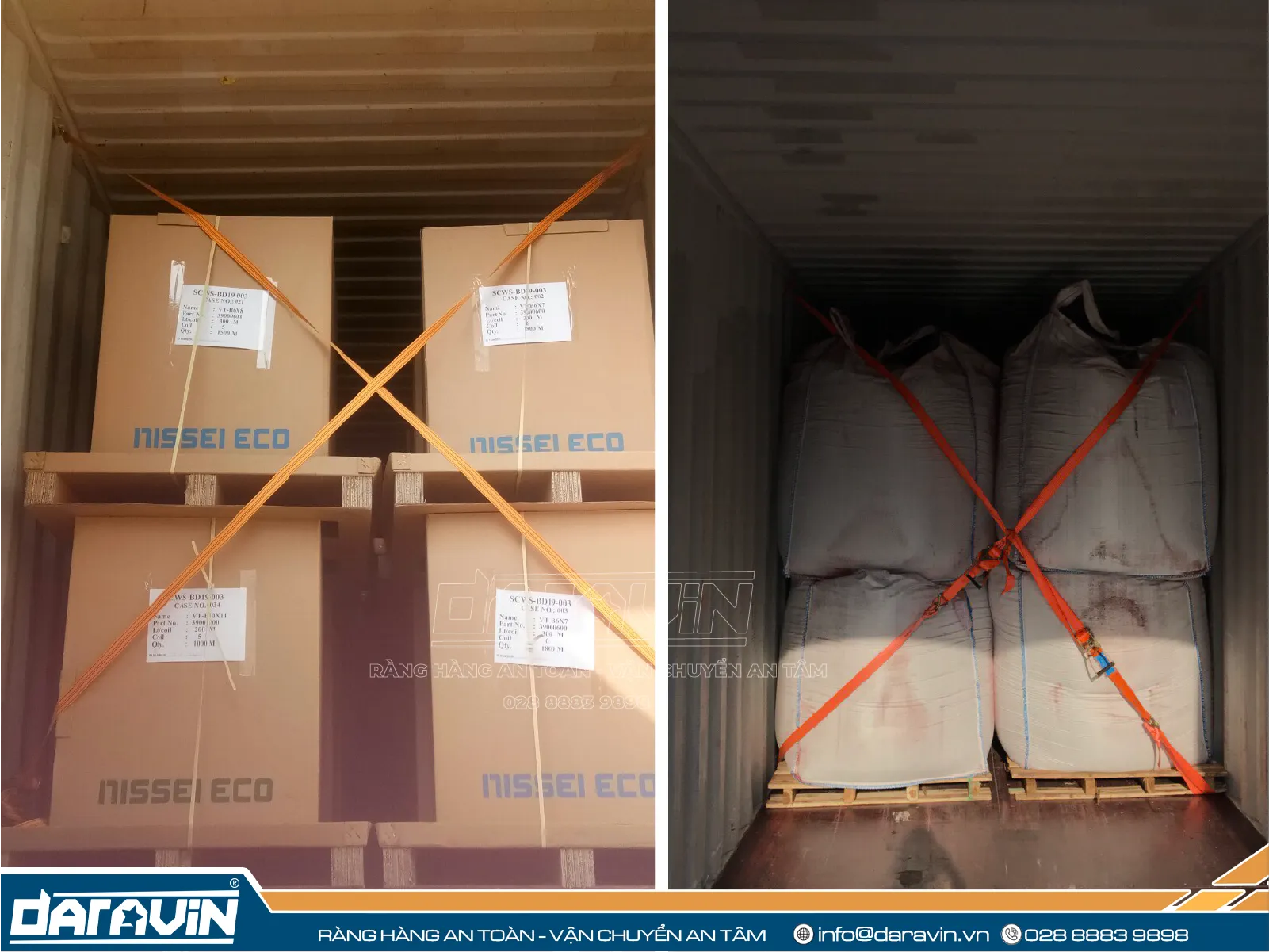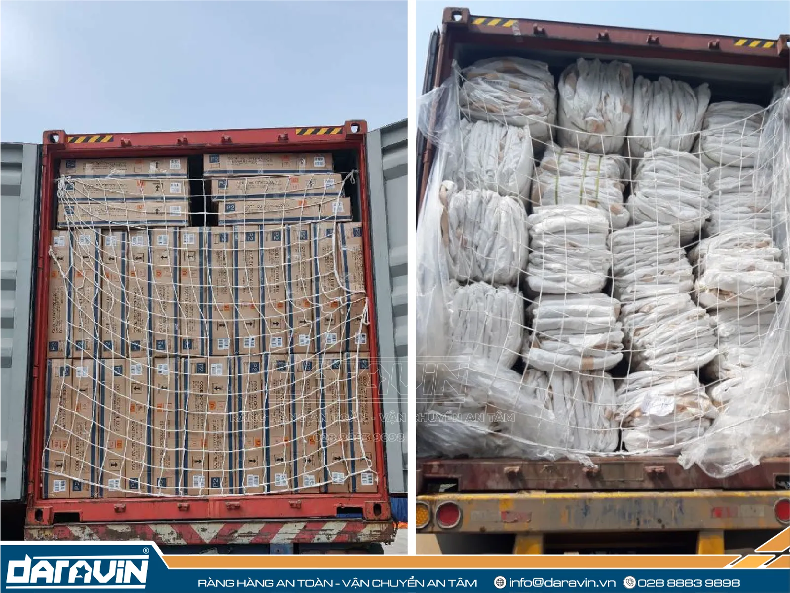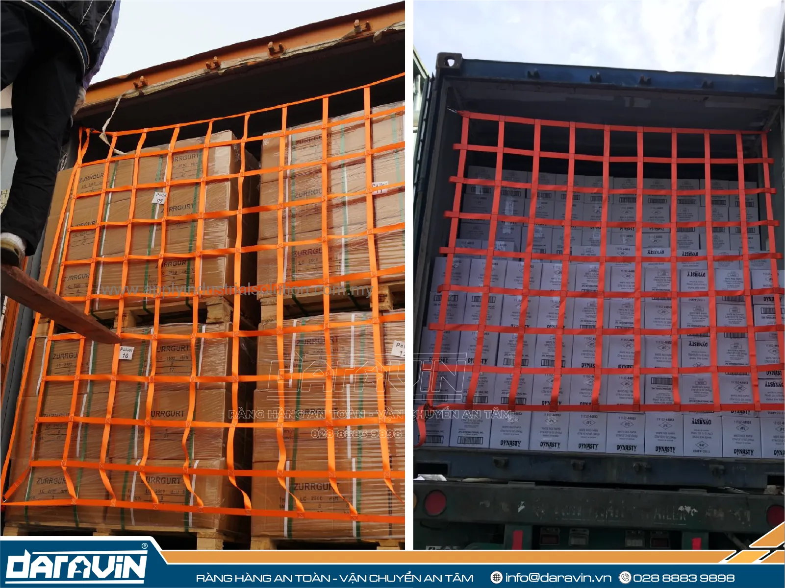 Ngoài ra, bạn có thể tham khảo sản phẩm lưới chắn container dây polyester, lưới chắn container của DARAVIN để bảo vệ hàng hóa tránh bị rơi đổ khi mở container.